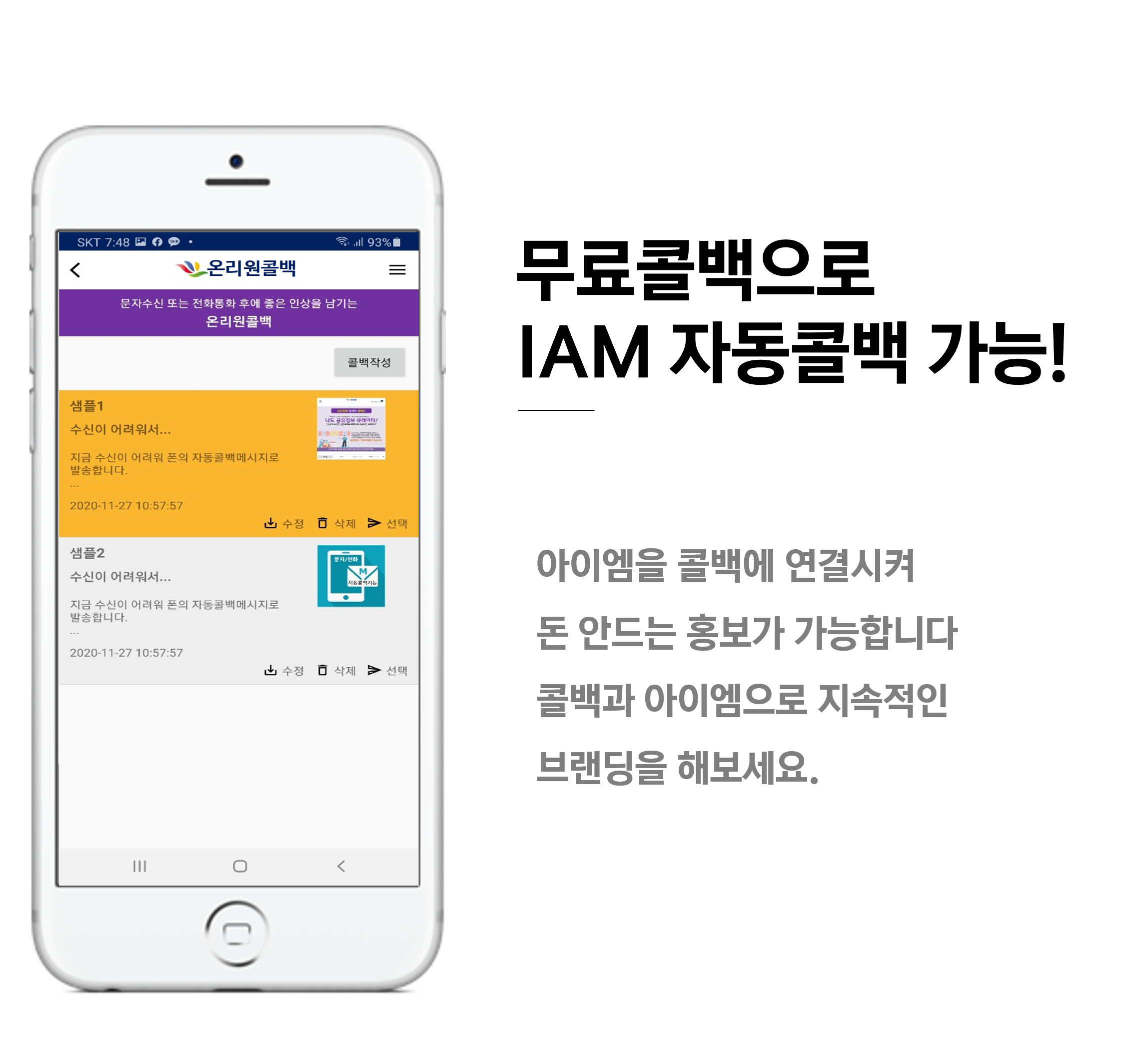 2. 콜백 메시지 세팅을 동의한 회원의 콜백 메시지함에 샘플 메시지로 등록되어 디폴트로 선택됩니다.