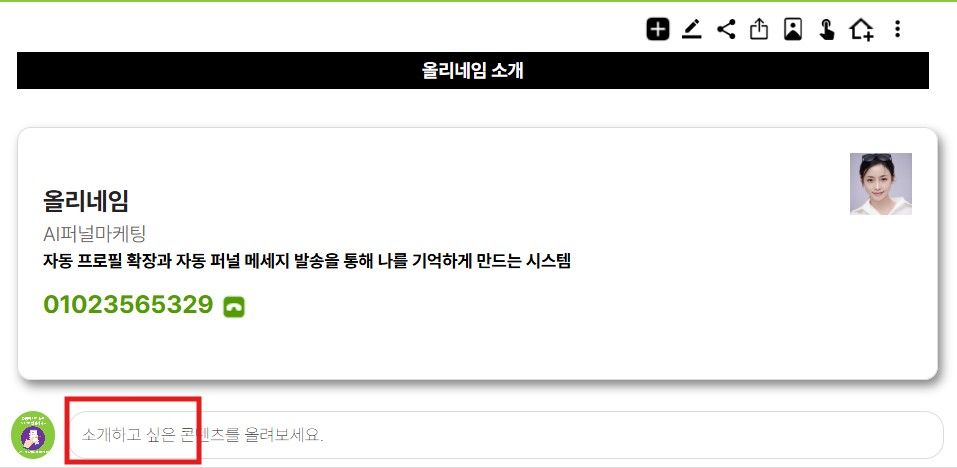 올리네임은 연락처를 전달하는 단순한 명함이 아니라,